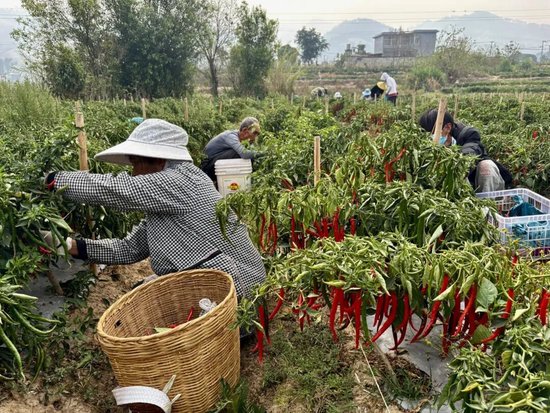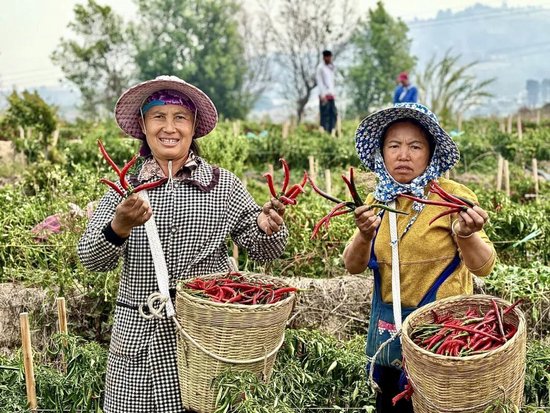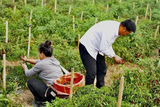 正在采摘辣椒的工人罗云梅说:“我们的工钱是一天100元,我们已经来了10多天,辣子比较好摘,老老小小都可以摘,比做其他活计要轻松。”辣椒种植和采收期间,90亩基地累计带动千福村500名群众就近务工,让村民在家门口就能增收。