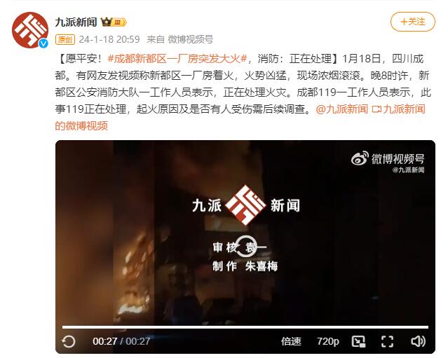 愿平安!成都新都区一厂房突发大火,消防:正在处理