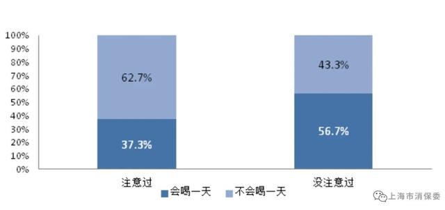 从这次检测总体结果来看,市面上果汁的卫生还是很安全的,大家完全可以放心买安心喝。但是,大家在喝果汁时,应该重视外包装上的饮用时间提示。市消保委微信团队在调查中发现,近四成消费者没有注意果汁饮料包装上的饮用时间提示。在问及“一些果汁饮料会在外包装上注明‘在XX小时内喝完’的提示,您注意过吗?”的问题时64.8%的消费者表示注意过,35.2%表示没有注意过。而这些表示没有注意过果汁饮料包装上时间提醒的消费者中一瓶果汁喝一天的比例也更高。