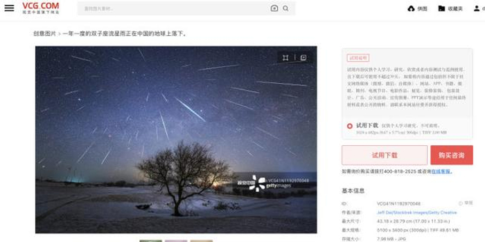 “视觉中国”展示的图片均为戴建峰所拍,包括银河、流星雨等。