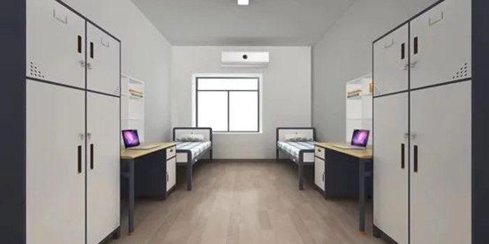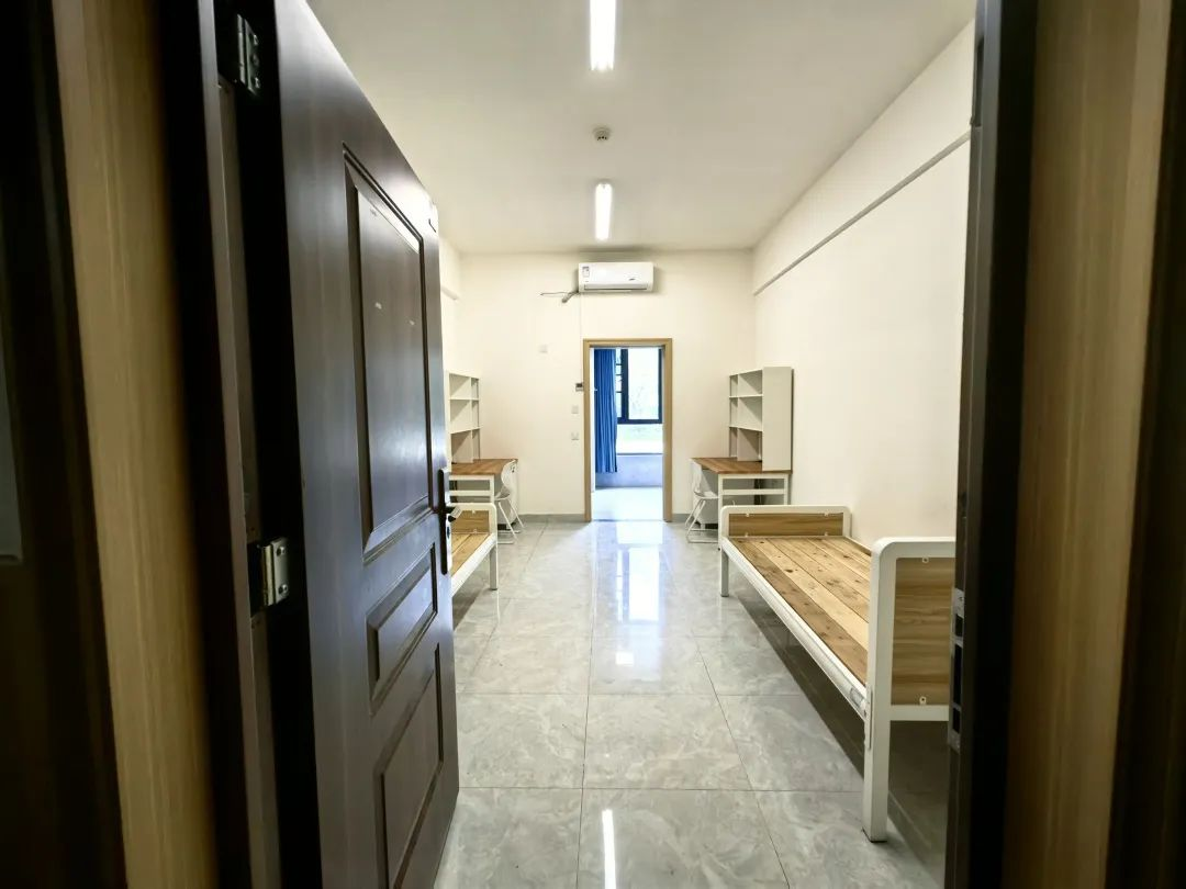 武汉大学公布的夫妻宿舍内景图显示,宿舍里配有两张单人床、两张桌子和两个衣柜。
