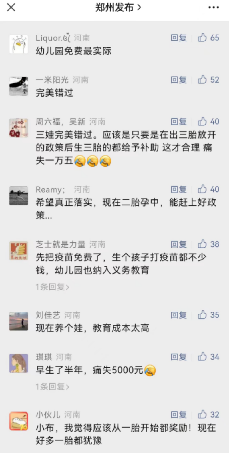 也有网友抱怨“生早了”,并希望政策能够溯及既往,覆盖三胎放开后即生三胎的人群。