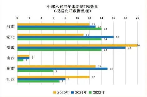 而从已上市公司的总体数量来看,安徽(171家)也超中部其他五省。