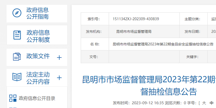中国质量新闻网讯 2023年9月12日,昆明市市场监督管理局发布2023年第22期食品安全监督抽检信息公告。