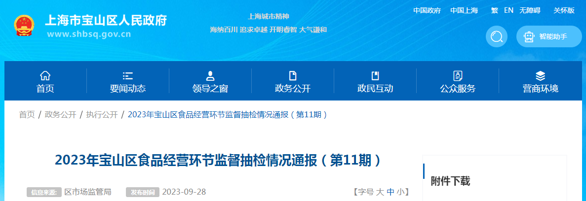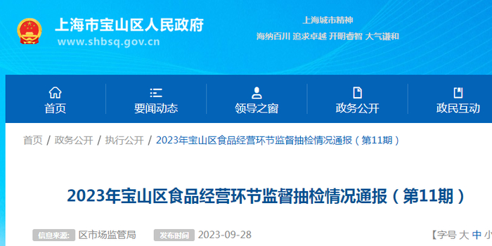 上海市宝山区市场监督管理局通报2023年食品经营环节监督抽检情况(第11期)