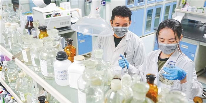 检测室里,工作人员对抽样产品细致检查,排查隐患、防范风险;