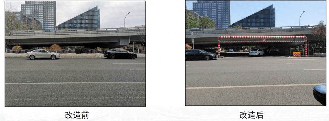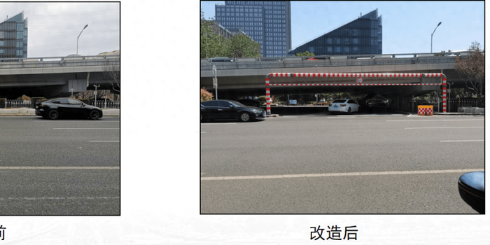 三是路口北进口受隔离带阻隔,进口道由路段5车道渐变为4条车道,存在道路瓶颈,本次通过降井、拆除障碍物等措施,打通了道路瓶颈。