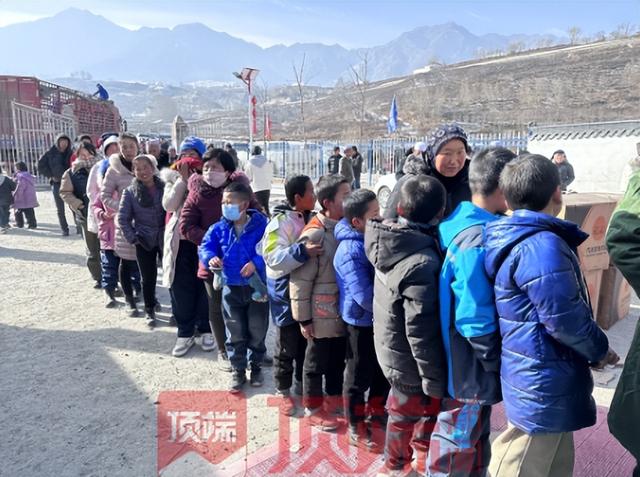 12月20日,大河家镇梅坡村不断有物资送来。正值午饭时间,安置点内一处“简易面馆”前,热气腾腾的兰州牛肉面持续出锅,村民排起长队领取。