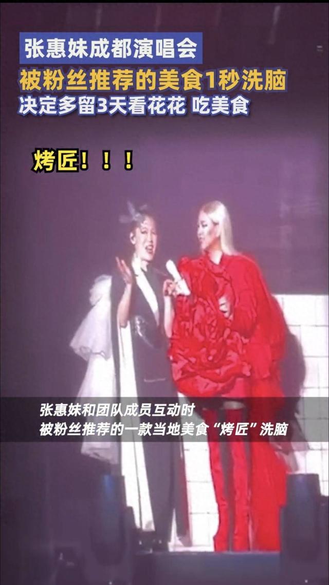关注1月6日至1月7日,张惠妹巡回演唱会落地成都。在演唱会的Talking环节中,张惠妹被粉丝呼喊的“不吃火锅就吃烤匠”吸引,与团队成员相约一同品味成都美食。更让人惊喜的是,张惠妹在现场表达了对大熊猫“花花”的喜爱,称其为“成都最顶流的女明星”。