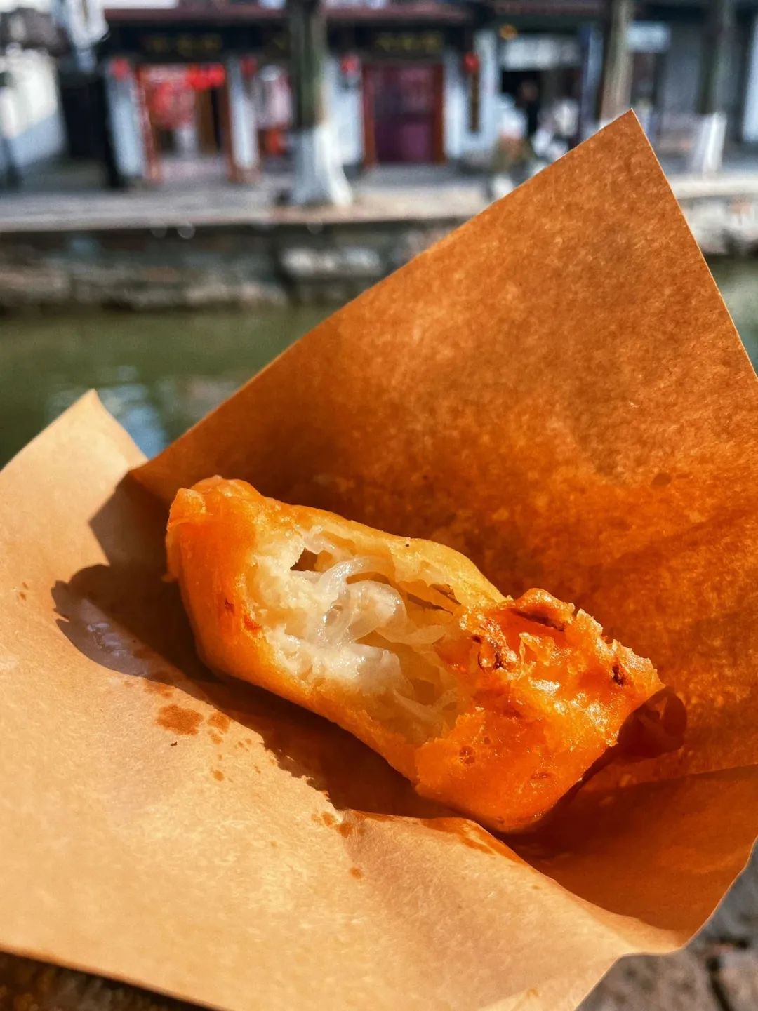 冬日漫游古镇,就着江南水景,咬下一口怀旧风味的油墩子,“米道嗲哇?”