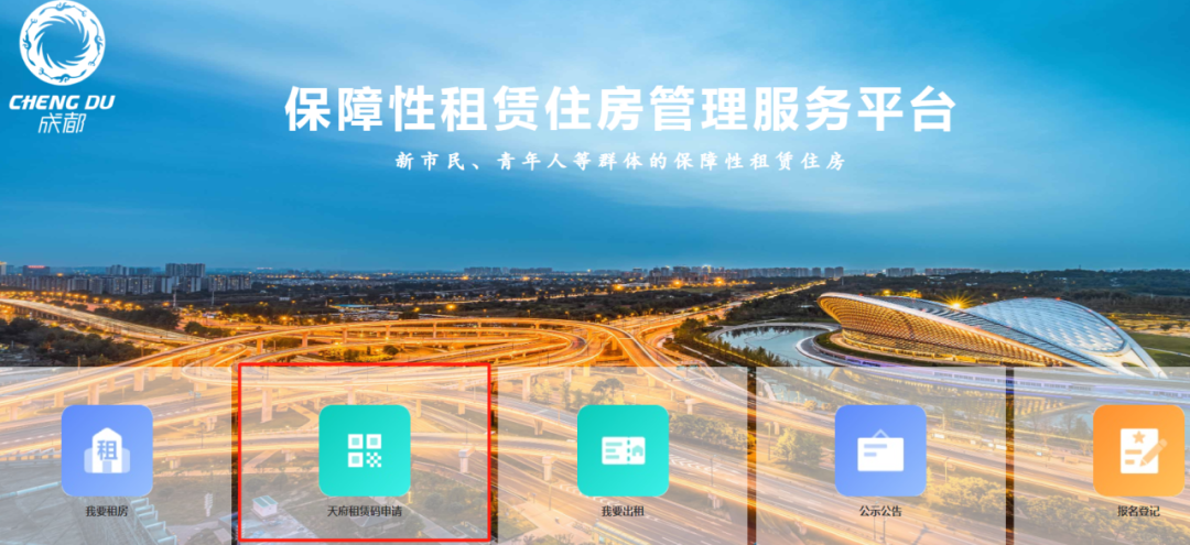 第一步:保障性租赁住房需先申请“天府租赁码”,取得租赁码后才能参与项目登记和选房。