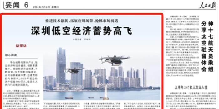7月6日,人民日报刊发题为《推进技术创新,拓展应用场景,抢抓市场机遇 深圳低空经济蓄势高飞(探访)》的文章,记者吕绍刚探访深圳低空经济发展路径。以下为全文,一起来看看。