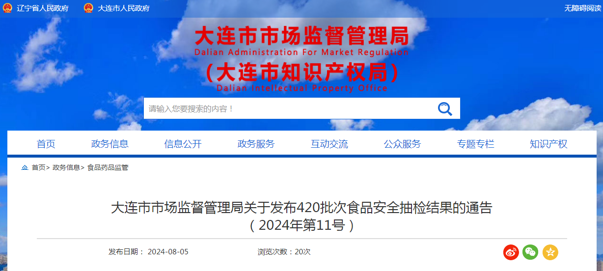 辽宁省大连市市场监督管理局关于发布420批次食品安全抽检结果的通告(2024年第11号)