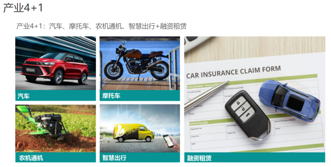 经过多年发展,现已形成以汽车、高端摩托车、农机通机、智慧出行+融资租赁的4+1产融一体发展平台。