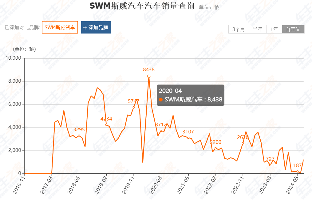 从统计来看,从收购以来,斯威汽车销量最高是2020年4月,达到8438辆,仍未破万。