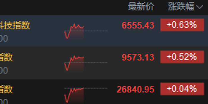 10月9日消息,港股三大指数集体上涨。截至午间收盘,恒生指数涨0.04%,报26840.95点,恒生科技指数涨0.63%,国企指数涨0.52%。盘面上,科网股涨多跌少,联想集团涨超6%,哔哩哔哩涨超2%;航运及港口股活跃,太平洋航运涨超2%;风电股走高,金风科技涨近9%;高铁基建股大涨,中国中铁涨超9%;消费电子产品早盘持续下跌,万威国际跌超11%。