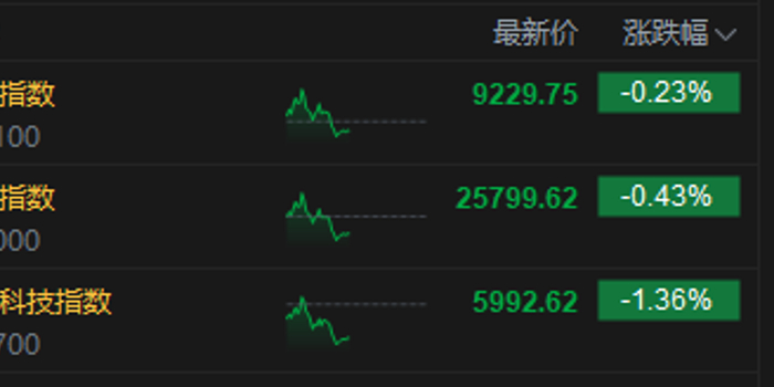 10月16日消息,港股三大指数低开低走。截至午间收盘,恒生指数跌0.43%,报25799.62点,恒生科技指数跌1.36%,国企指数跌0.23%。盘面上,科网股普跌,小米跌超3%,百度跌2%,美团、京东、联想、网易、腾讯跌超1%;教育板块涨幅居前,思考乐教育涨超18%;生物技术股走强,药捷安康涨超42%;新能源车企股走弱,小鹏汽车跌超3%;云迹上市首日涨超36%。