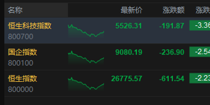 收评:港股恒指跌2.23% 科指跌3.36% 科网股、黄金股普跌 芯片股走弱 百度跌近4%