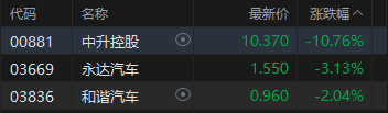 汽车经销商板块走低,中升控股跌超10%。消息面上,香港新一份财政预算案宣布,电动私家车的首次登记税宽减,包括“一换一”计划,会在下月31日届满后不再继续。香港财政司司长陈茂波表示,考虑到目前电动私家车技术成熟、供应充足、车款选择增加和价格逐渐下调,电动私家车已具备市场竞争力,电动私家车的首次登记税宽减安排在下月底届满后不再继续。政府会继续推动电动车的使用。电动商用车、电动电单车和电动机动三轮车的首次登记税,继续获全数豁免至2028年3月底。
