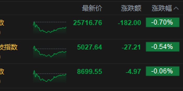 3月12日消息,港股三大指数集体下跌。截至收盘,恒生指数跌0.7%,报25716.76点,恒生科技指数跌0.54%,国企指数跌0.06%。盘面上,科网股普跌,哔哩哔哩跌超3%,百度、阿里巴巴、快手跌超1%;煤炭板块强势,兖矿能源涨超8%;内房股普跌,旭辉控股集团跌超5%;证券及经纪板块走弱,国泰君安国际跌超4%。
