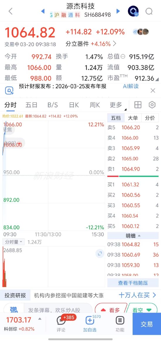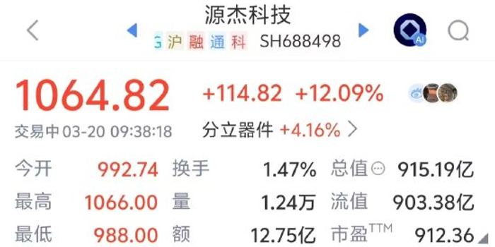 快讯:史上第八只千元股诞生!源杰科技股价1年涨近6.9倍