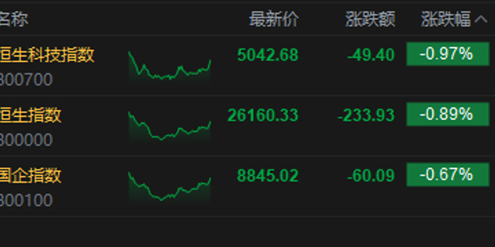 港股收评:恒指跌0.89% 科指跌0.97% 科网股低迷 黄金股普跌 群核科技首日涨超144%