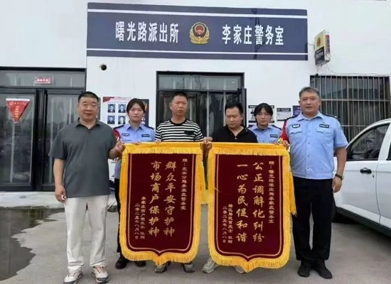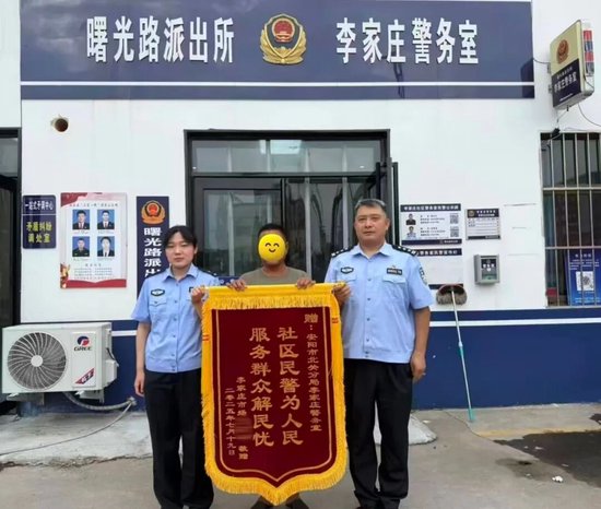 后来,我们分别给张警官送上锦旗,真心感谢他帮我们解决难题。