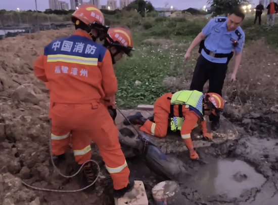 不慎失足坠入附近的泥坑