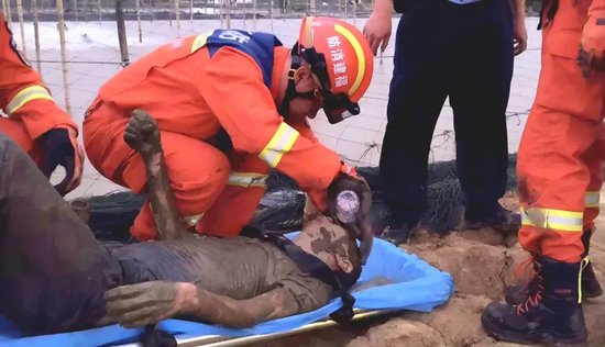 被困20小时!消防队员相互配合救其脱困