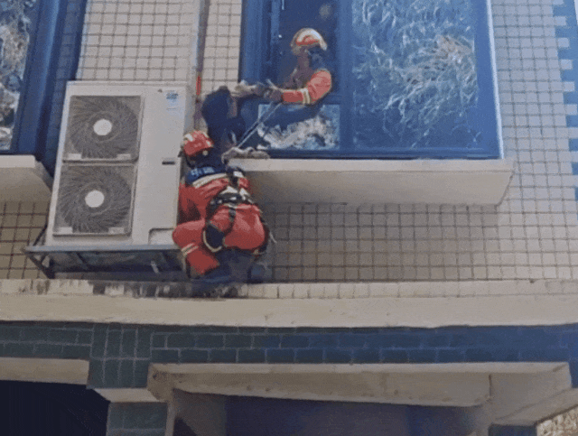 9岁女孩竟爬到窗外,消防员借助救援绳成功救援
