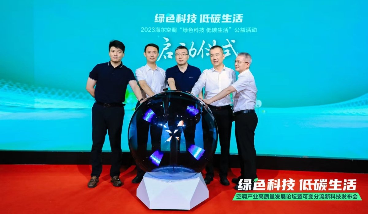 为全面推广可变分流技术,将健康节能科技惠及千家万户,现场还举行了“2023海尔空调 绿色科技 低碳生活 公益活动启动仪式”,得到与会嘉宾的支持与肯定。