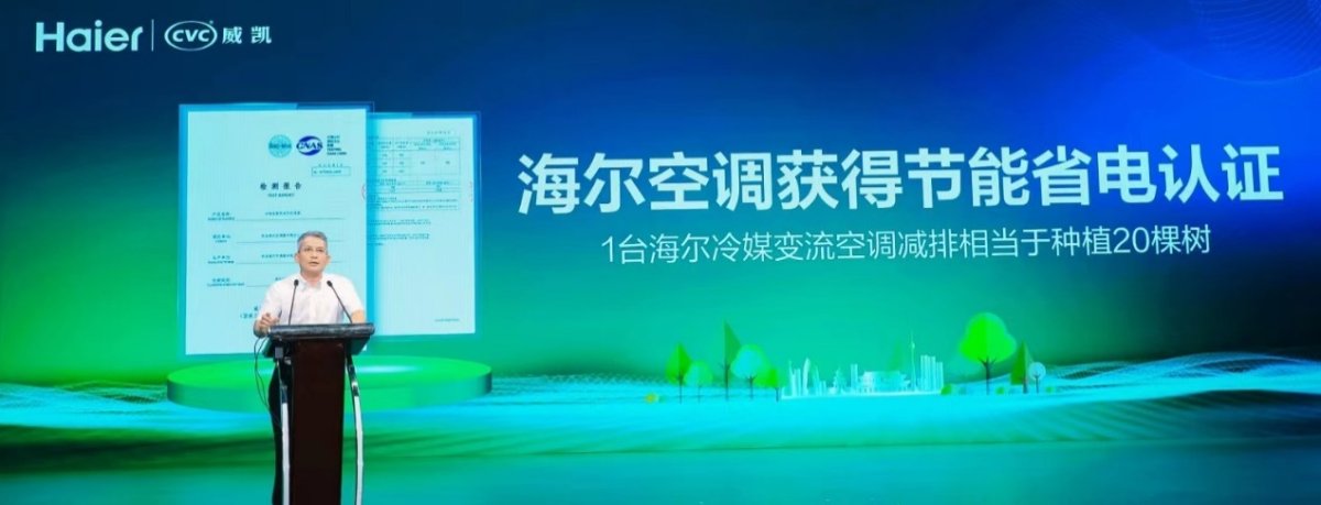针对这一技术的真实节能表现和效果,中国电研威凯检测技术有限公司还进行了实机检测。现场,威凯检测副总经理刘国荣带来了“低碳产品认证”和“节能检测报告”两份认证,证明了海尔冷媒变流空调的节能实力。