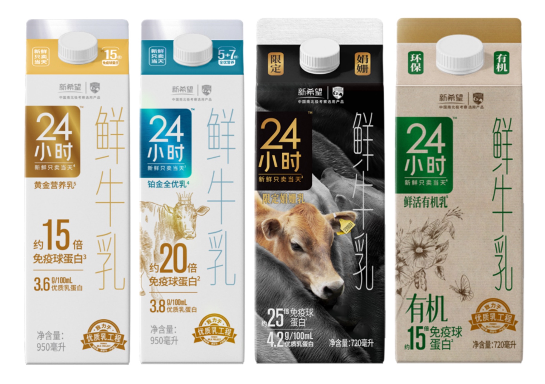 另一方面,新希望乳业持续推动产品创新迭代,强化低温产品矩阵,提升品类结构和竞争力。明星产品“24小时”系列鲜牛乳不断升级后,已迭代至4.0版本,所含免疫球蛋白也从普通鲜奶的10倍提升为25倍,满足消费者更多营养需求,引领品类升级潮流。2023年新希望乳业新品收入占比达12%,“24小时”高端系列产品同比增速近40%。