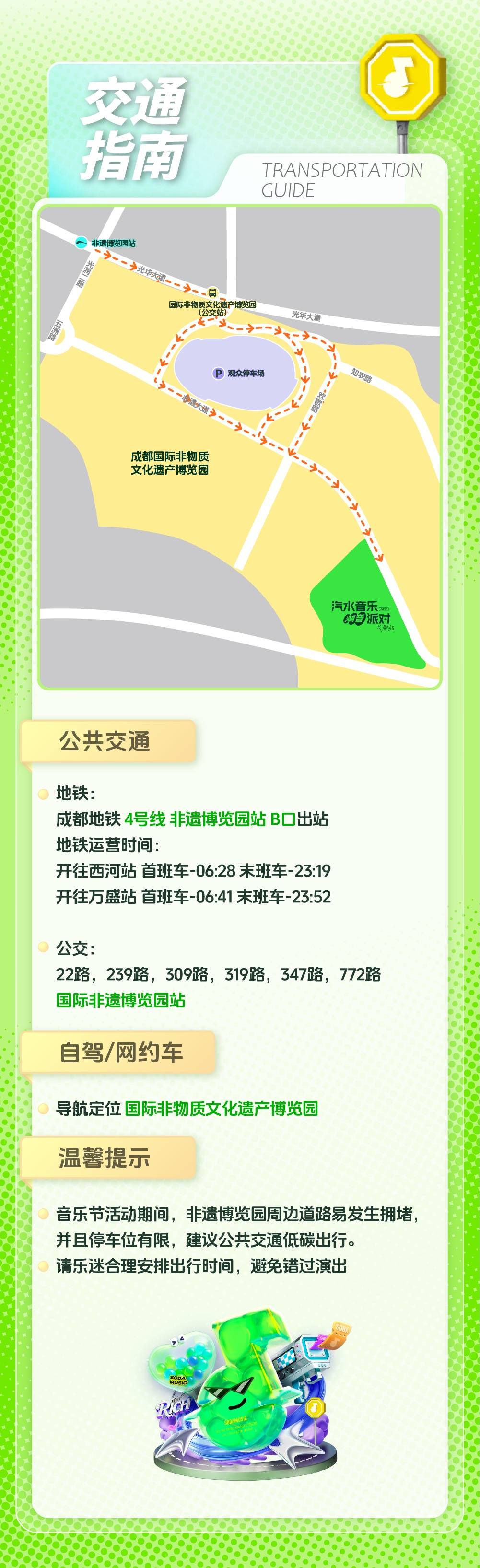 巴适的成都,需要安逸的出行。速速码住这份潮音派对出行攻略~我们一起元气满满的抵达现场。