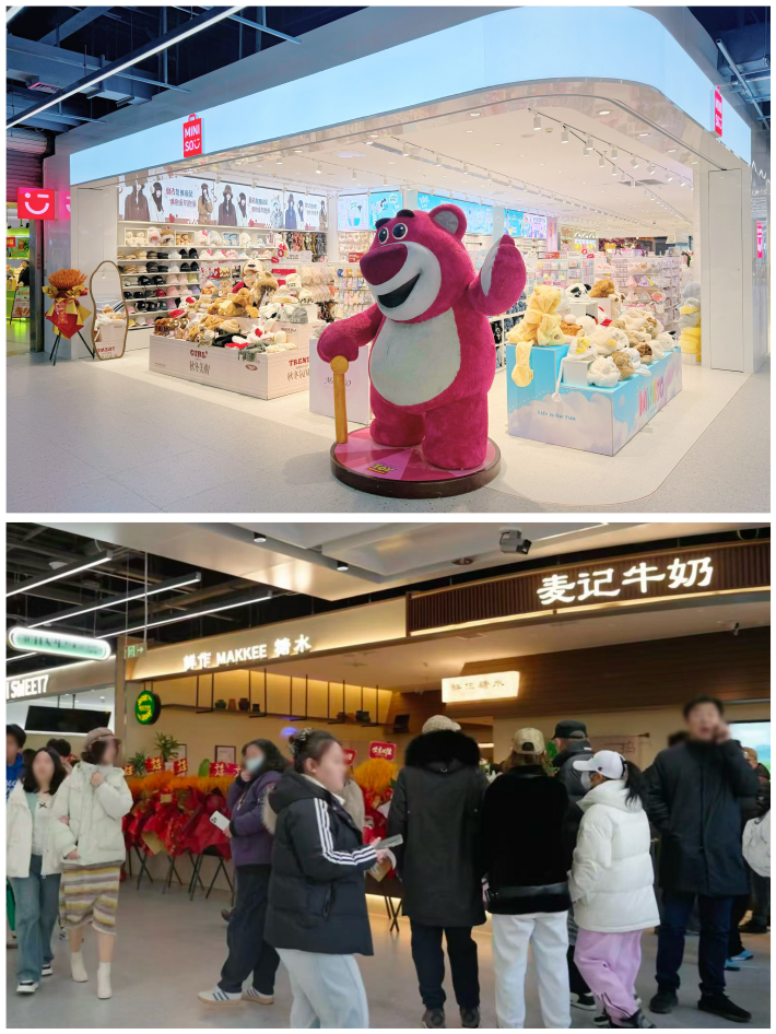 围绕“年轻、潮流、社交”的定位,中原瞰海在招商策略上精准发力,成功引入天津首店8家、滨海首店10家,首店占比高达26%,形成差异化竞争力。名创优品滨海旗舰店、石叶书咖天津首店、麦记牛奶滨海首店等特色品牌集体亮相,覆盖文创、餐饮、潮玩等多维度消费需求,以“首店经济”激活商圈品牌活力。