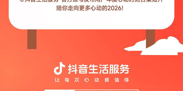 ‘跨年上抖音,一起打卡心动时刻’——抖音生活服务邀你走进真实烟火,把线上心动,变成脚下的奔赴。跨年季的压轴大戏,12月31日,全国整活儿,就等你来。