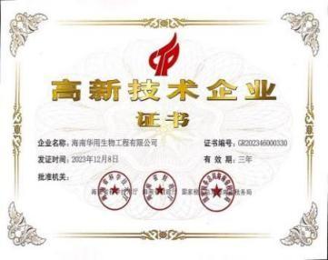 海南华用生物工程有限公司作为国家高新技术企业,拥有20余项专利,其生产设施已通过美国FDA认证。