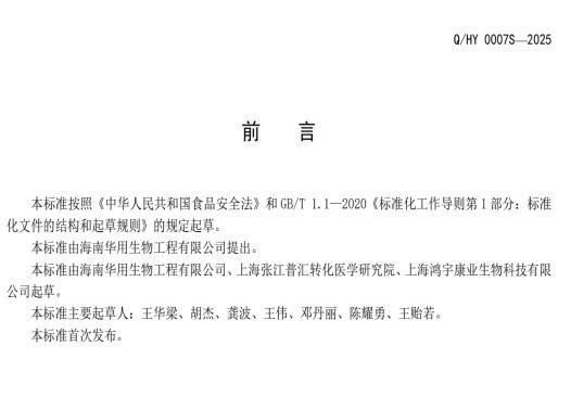 近日,由上海张江普汇转化医学研究院牵头、上海鸿宇康业生物科技有限公司、海南华用生物工程有限公司共同参与起草的《海巴戟虹甙原浆标准》,经海南省市场监督管理局及卫生健康委员会核准正式发布,该标准为海巴戟虹甙(提取)原浆生产提供了指导性技术规范。