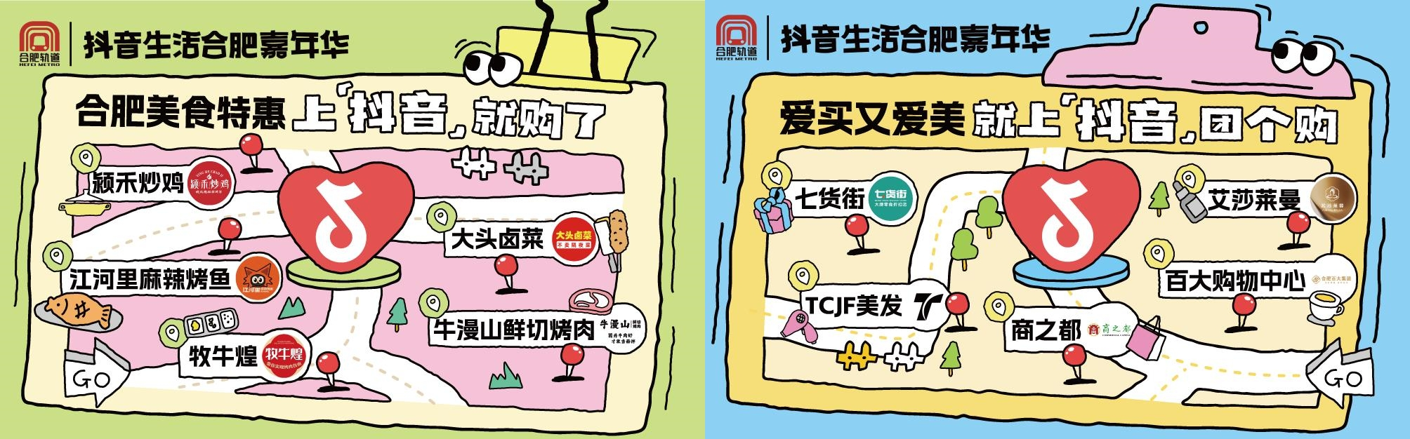 此次全新上线的二期联名卡共5款,兼顾实用与人文内涵。其中,2款合肥地图主题卡化身“城市逛吃指南”,清晰展示牛漫山鲜切烤肉、江河里麻辣烤鱼等美食地标,以及七货街、百大购物中心等热门打卡地,用户在通勤路上就能锁定吃喝玩乐目的地。作为在抖音平台深度布局、重点运营的合肥本土头部企业,合肥百大集团也携手抖音生活服务与合肥轨道,联动旗下合家福、百大电器等优质资源,重磅推出3款联名卡,实现消费场景无缝延伸,真正实现“一卡在手,通勤消费双便利”的体验升级。