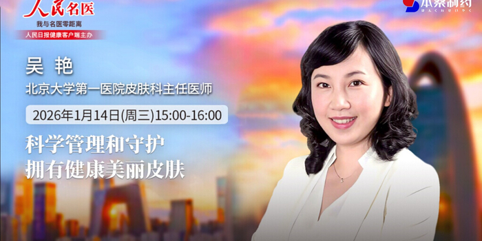 2026年1月14日,由人民日报健康客户端主办的“人民名医”系列直播活动之“科学管理和守护,保有健康美丽皮肤”专场顺利结束。本次直播特邀北京大学第一医院皮肤科主任医师、人民日报健康时报特邀嘉宾吴艳担任主讲,吸引了众多观众在线观看,直播间互动热烈,取得了良好的科普效果。