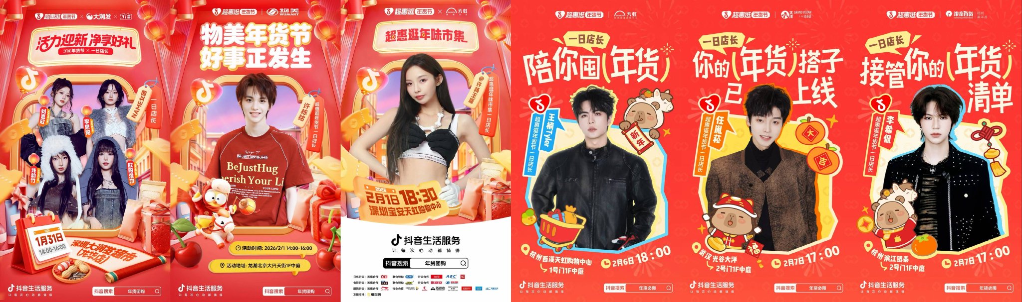 令人心动的“年货搭子”也已准备好出发,1月31日-2月7日期间,NAME女团、许栋铭、许杨玉琢、王楠Tyler 、任胤菘 、SayKan将分别空降深圳、北京、杭州、武汉等多地商超,陪你开团年货,快来和喜欢的一日店长见面,解锁更多心动时刻。