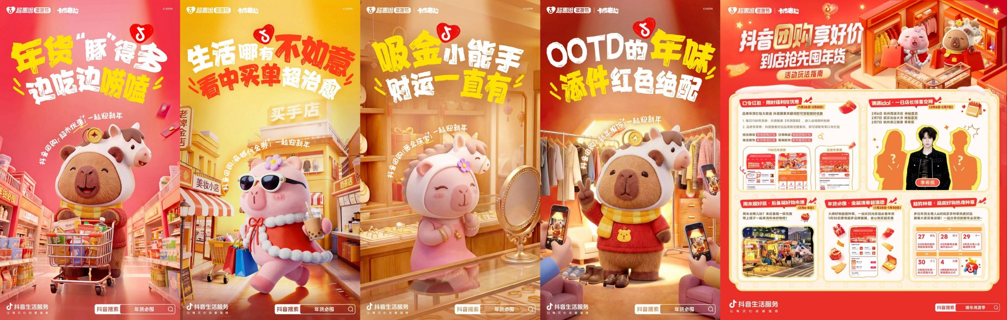 惊喜还在持续解锁中!‘超惠逛年货节’联合大热IP卡皮巴拉豚咔咔在10家商超,7家商场打造主题场景,来逛街就能偶遇卡皮巴拉特色场景,喊上好朋友们,留下新年快乐的第一张合影。