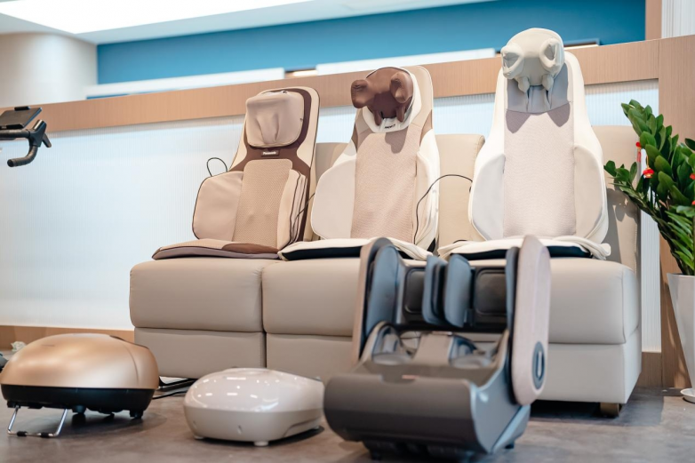 南京力动健身器材按摩椅旗舰店按摩健康区则致力于打造深度舒愈空间,汇集了国际标杆与国货创新的顶尖科技。拥有近百年技术积淀的松下(Panasonic)在此展示了其全线高端产品,其中全球旗舰MA131按摩椅搭载4D Real Pro 2.0机芯,实现毫米级精准触达,配合SJ型导轨实现170°深度零重力躺姿,带来如专业按摩师手法般的全身覆盖式放松。