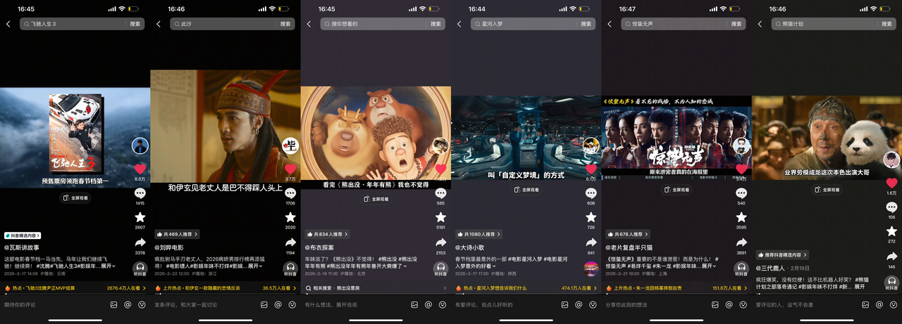 出圈的互动时刻持续抖音刷屏,助力春节档电影热度持续上分。