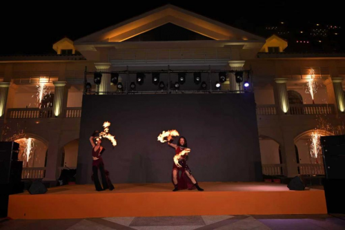落日熔金沉入南海,漫天星辉缀满港湾暮色,晚风漫过静谧船坞,本次派对的核心篇章——新春会员Bachata晚宴,于海风里商业街正式登场。开场烈焰舞蹈惊艳亮相,炽热灵动的舞姿与跃动火光,瞬间点燃整个港湾的夜色。