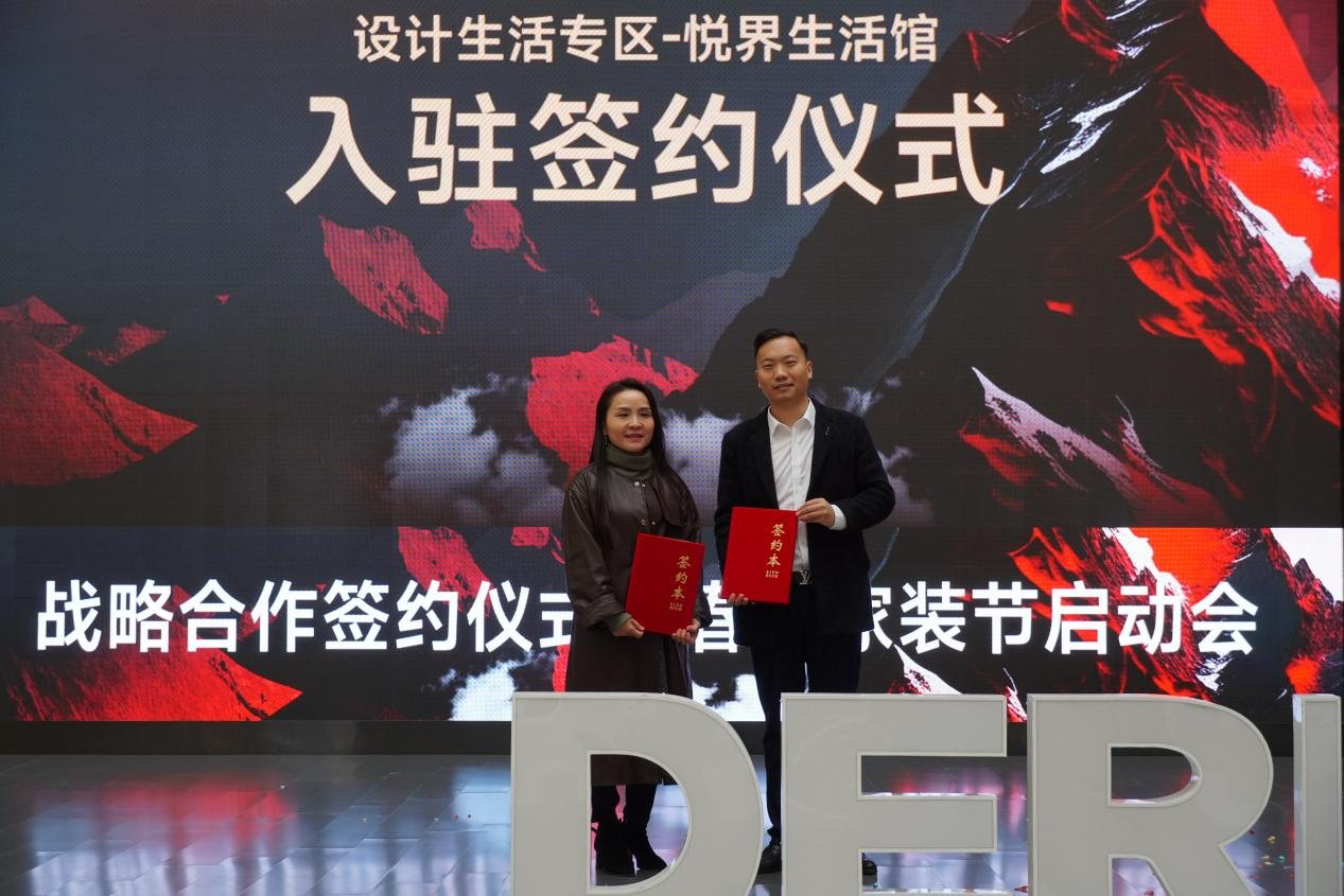 张梦云女士带来设计生活专区规划解读,悦界家居主理人王凤女士作为家居新专区代表上台致辞,并与刘赛虎先生完成第六空间大宅中心与悦界家居入驻签约。又一优质品牌的加入,为设计生活专区注入全新活力。