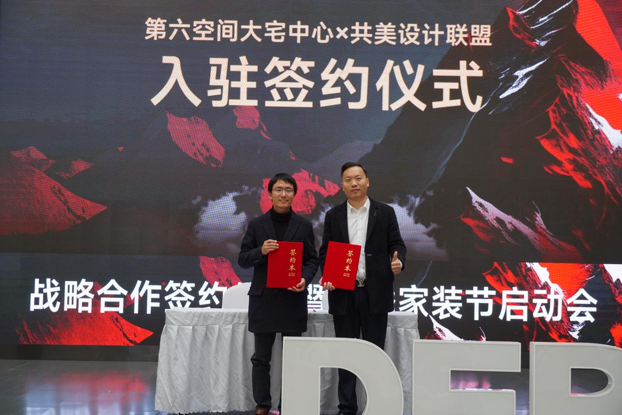 共美设计联盟主理人夏志国上台致辞,随后与刘赛虎先生共同签署第六空间大宅中心与共美设计联盟合作协议。顶尖设计资源的集结,将为合肥大宅业主带来更多想象空间。