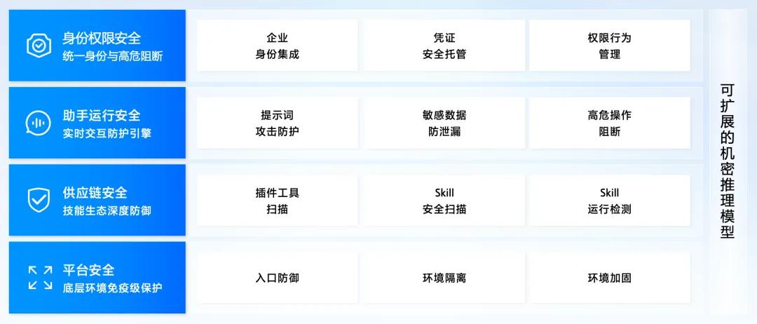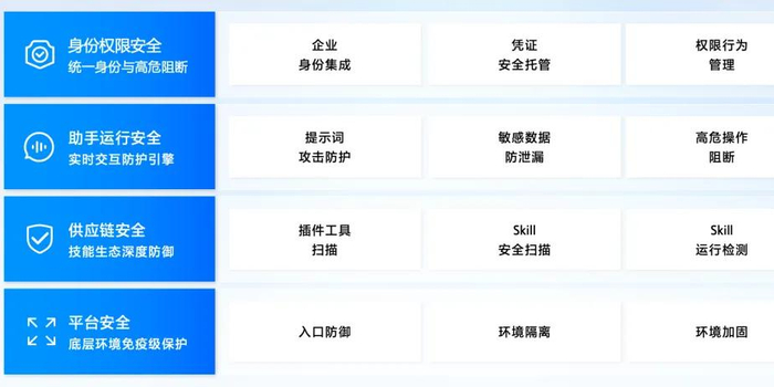 从 Agent 部署环境、工具调用、Agent 运行时、权限行为四大方面,ArkClaw 全时段、全面护航安全养“虾”。