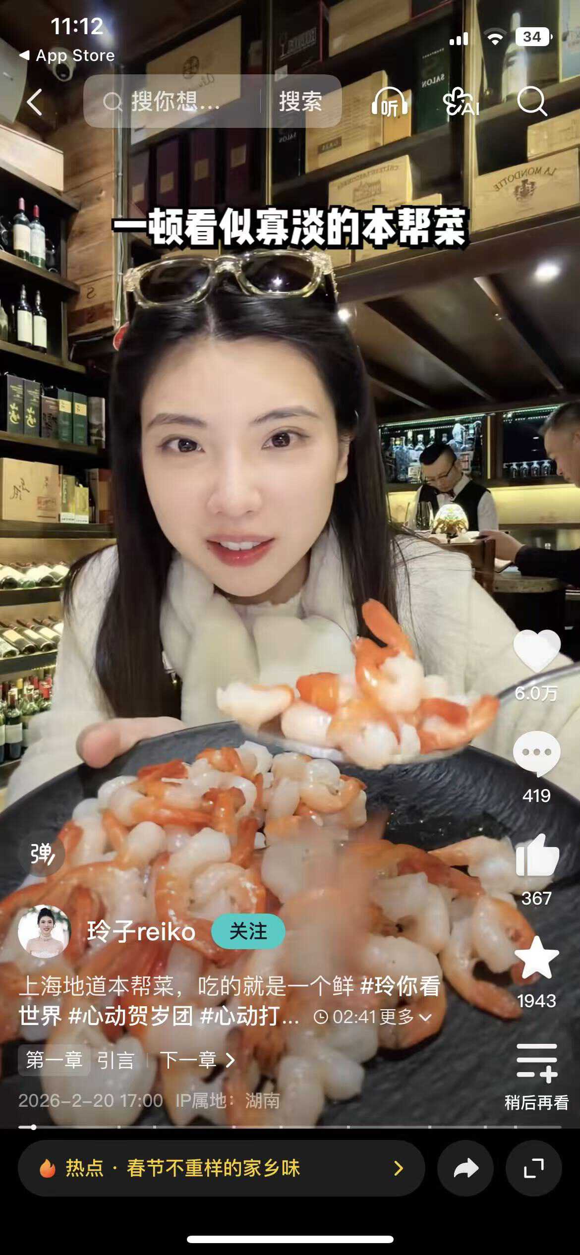 生活方式达人@玲子reiko 的春节美食地图里,有哈尔滨百年菜市场里的各色小吃、浓油赤酱的“沪上漂亮饭”,以及40年香港老店里肥美油润的烧腊,相关作品收获超32万点赞。#年夜饭菜单提前曝光了 的话题,登上抖音热点榜Top 2,在榜vv(视频播放量)超3亿。