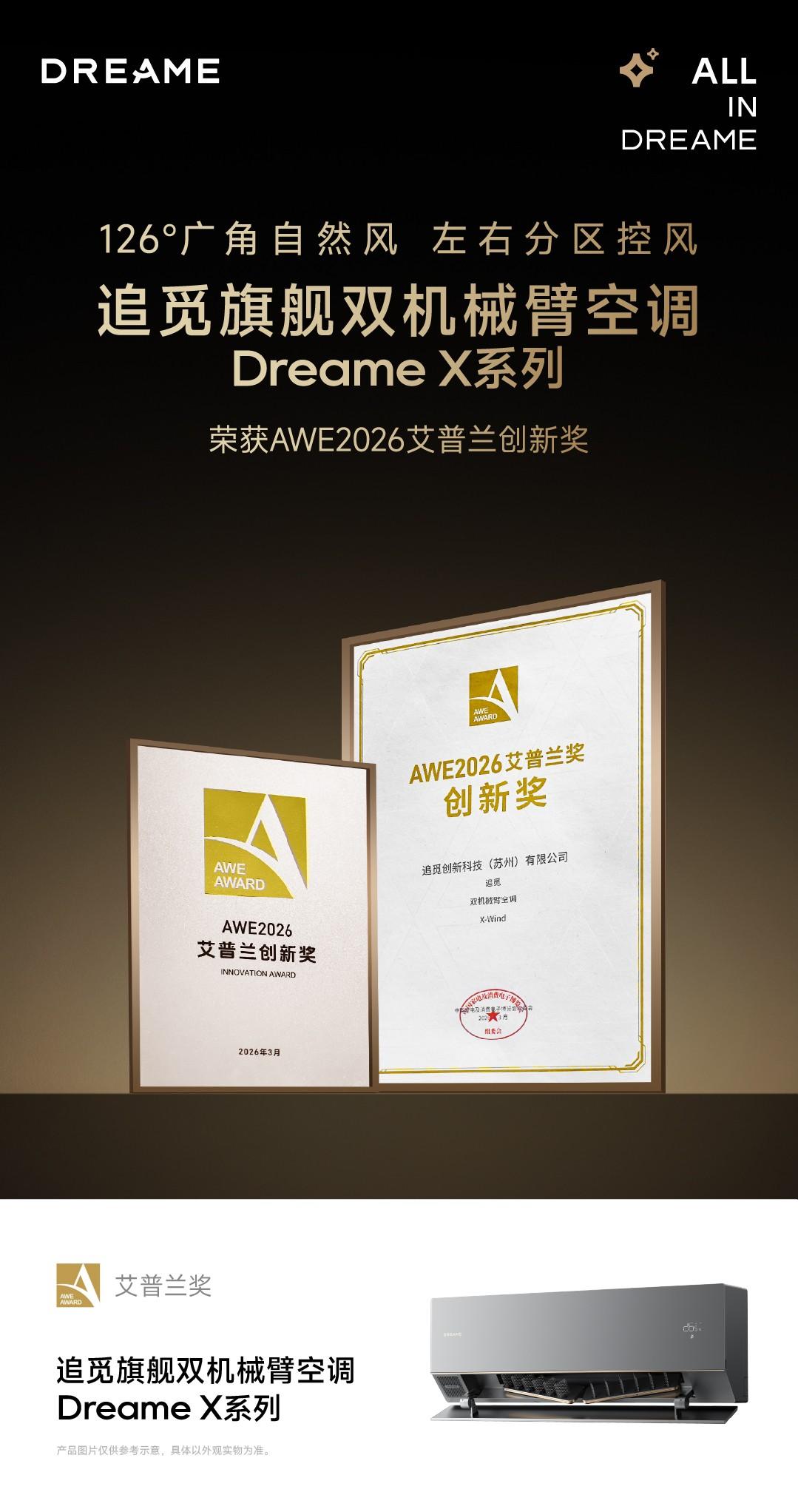 追觅旗舰双机械臂空调斩获AWE 2026艾普兰创新奖!行业创新职高荣誉!